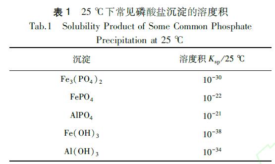 不溶性磷酸鹽沉淀物的溶度積在一定程度上也會(huì)影響除磷劑的除磷效果。根據(jù)溶度積原理,相同類型的難溶電解質(zhì)Ksp越小,溶解度越小,從而越容易生成沉淀,磷的去除效果越好;反之,K越大,溶解度越大,去除效果越差。了解不同沉淀物的溶度積,可以為選擇除磷劑提供參考。一些常見(jiàn)沉淀的溶度積如表1所示。