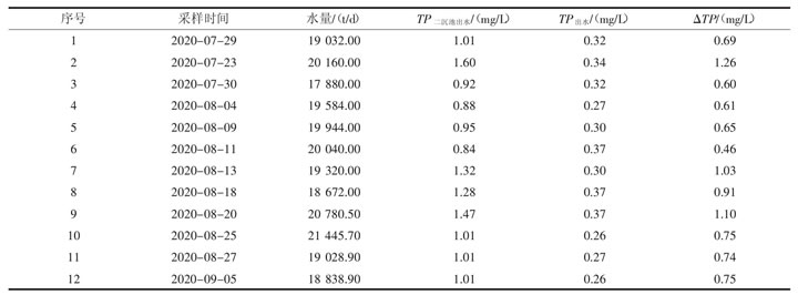 表1 湛江市某城區(qū)污水廠TP實(shí)測值